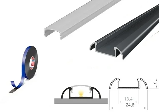 Crafted with high-quality materials, this surface-mounted LED profile boasts a durable Anthracite Grey finish that seamlessly blends into any decor, adding a touch of elegance to your space. Its compact dimensions of 24.6mm in width and 7mm in height make it versatile and unobtrusive, perfect for installations where space is limited.