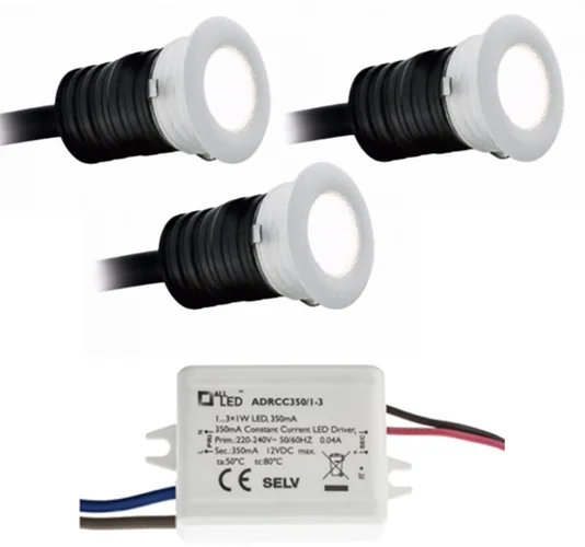 3 Light Kit of All LED Marker Lights 16mm Dia. 1 Watt IP44 (Warm White - White Finish) from All LED
