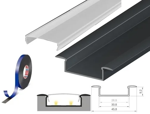 With dimensions of 45.8mm x 9.2mm, this LED profile provides a robust and stylish housing for LED strip lights, ensuring consistent and uniform illumination across your space. The Anthracite Grey finish adds a touch of sophistication to any environment, while the recessed design offers a clean and minimalist aesthetic.