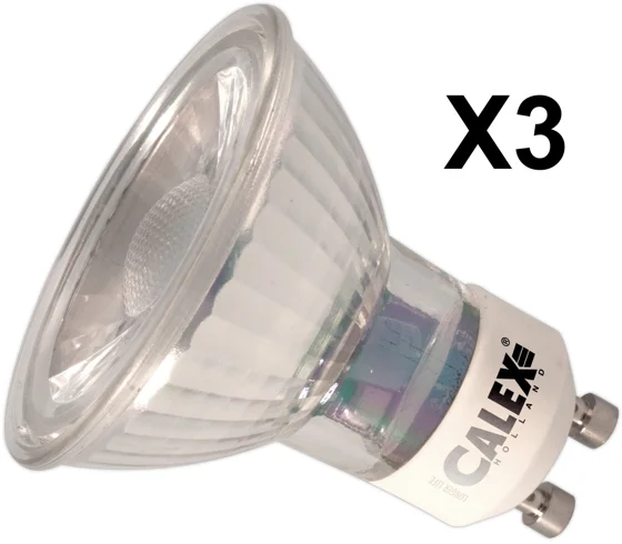 A pack Of 3 Fully Dimmable LED GU10s from Calex featuring a Very Warm White colour temperature and rated at just 5.5 Watts. Outputting the equivalent light as a 35 watt standard halogen GU10, this new LED is a great retrofit replacement saving 80% in energy consumption and lasting a very respectable 15,000 hours! The ever popular GU10 is commonly used for accent and display lighting, for downlights and spotlighting in domestic, retail, commercial and hospitality applications. This LED GU10 is dimmable from 2700 Kelvin to 2000K.