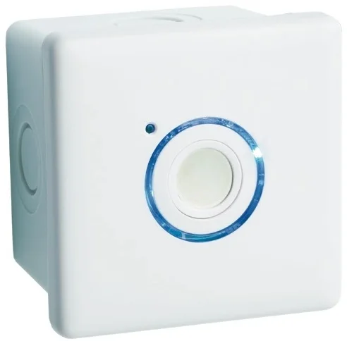 Elkay presents this white finish timer switch that features a blue indicator ring light around the touch button. It is IP66 rated, making it suitable for use outdoors. The 3 wire internal set up makes having a neutral wire a requirement. It is suitable for loads of up to 16A, and is ideal for use with Resistive, Incandescent, LED, CFL and Fluorescent loads. The timer can be adjusted via the dip switches mounted on the rear of the product, and it can be set between 2 minutes and 2 hours.