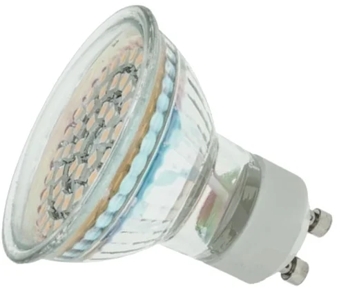 A colour changing led GU10 spotlight which is a direct replacement for GU10 halogen bulb, with benefits of longer life and cost savings approximately at 15 watts. This lamp is made up of a cluster of LEDs and has a reputed lamp life of 5,000 hours and changes through a range of colours in a sequence.