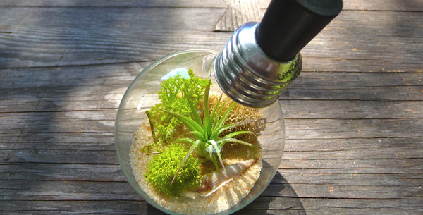 Use larger bulbs to create miniature terrariums complete with dirt, miniature animal toys and faux plants.