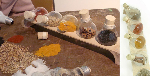After a thorough clean, old lightbulbs can be turned into on-trend spice jars.