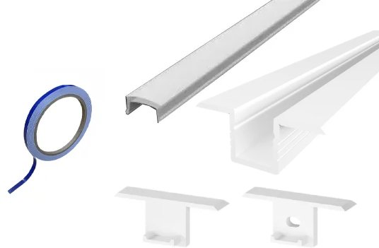 (17mm x 6.3mm) 2 Metre Recessed LED Micro Profile P6-4 in White - Tape, End Caps and Opal Cover