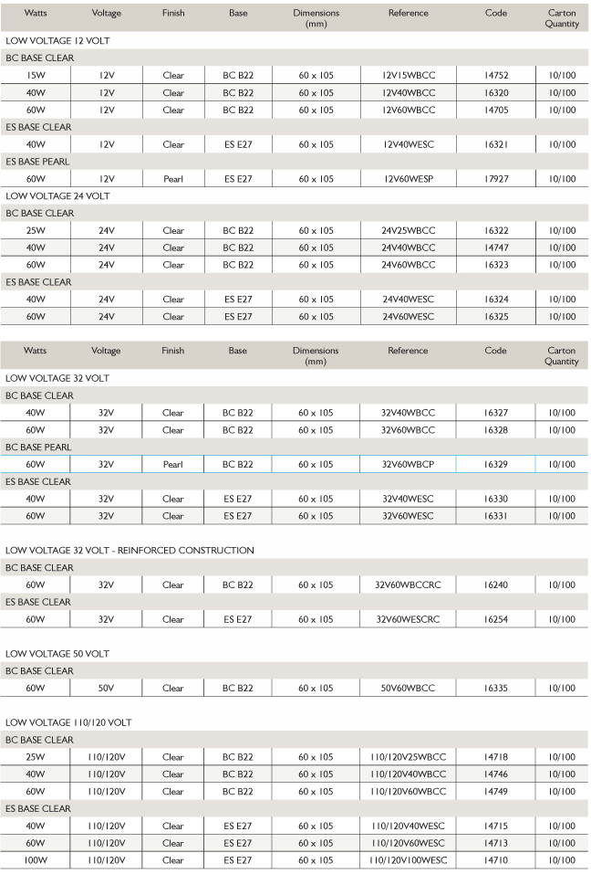 A incandescent low voltage general service GLS lamp, These lamps are used for variety of decorative applications