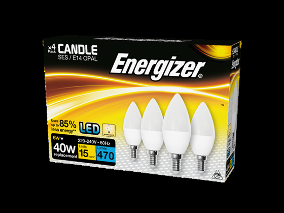 6 Watt Energizer LED Warm White 480lm Opal E14 Candle Pack of 4