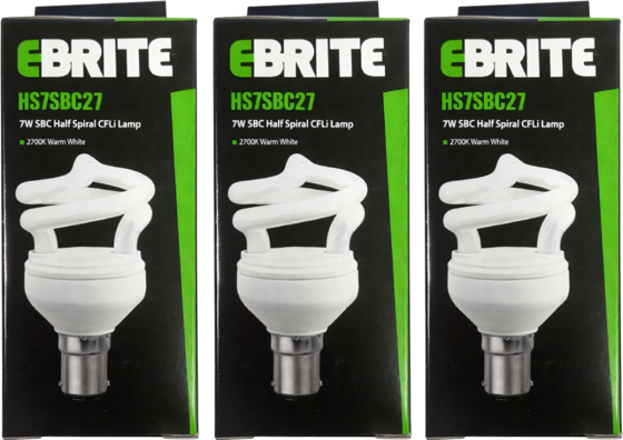 Ideal for both domestic and commercial use, the 7W SBC Half Spiral CFLi Lamp offers dependable performance, extended lifespan, and reduced energy consumption.