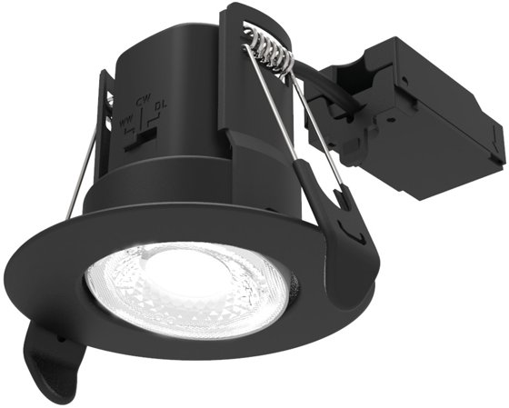 ALL LED ATOM - 5W IP65 Fire Rated Adjustable Dimmable CCT Downlight, Carbon Black Bezel