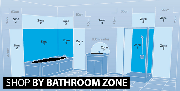 Zone 2 fittings should be IP44 Splashproof and should be fitted no closer than 0.6 metres from a source of water which may splash such as close to a bathtub or the shower enclosure.