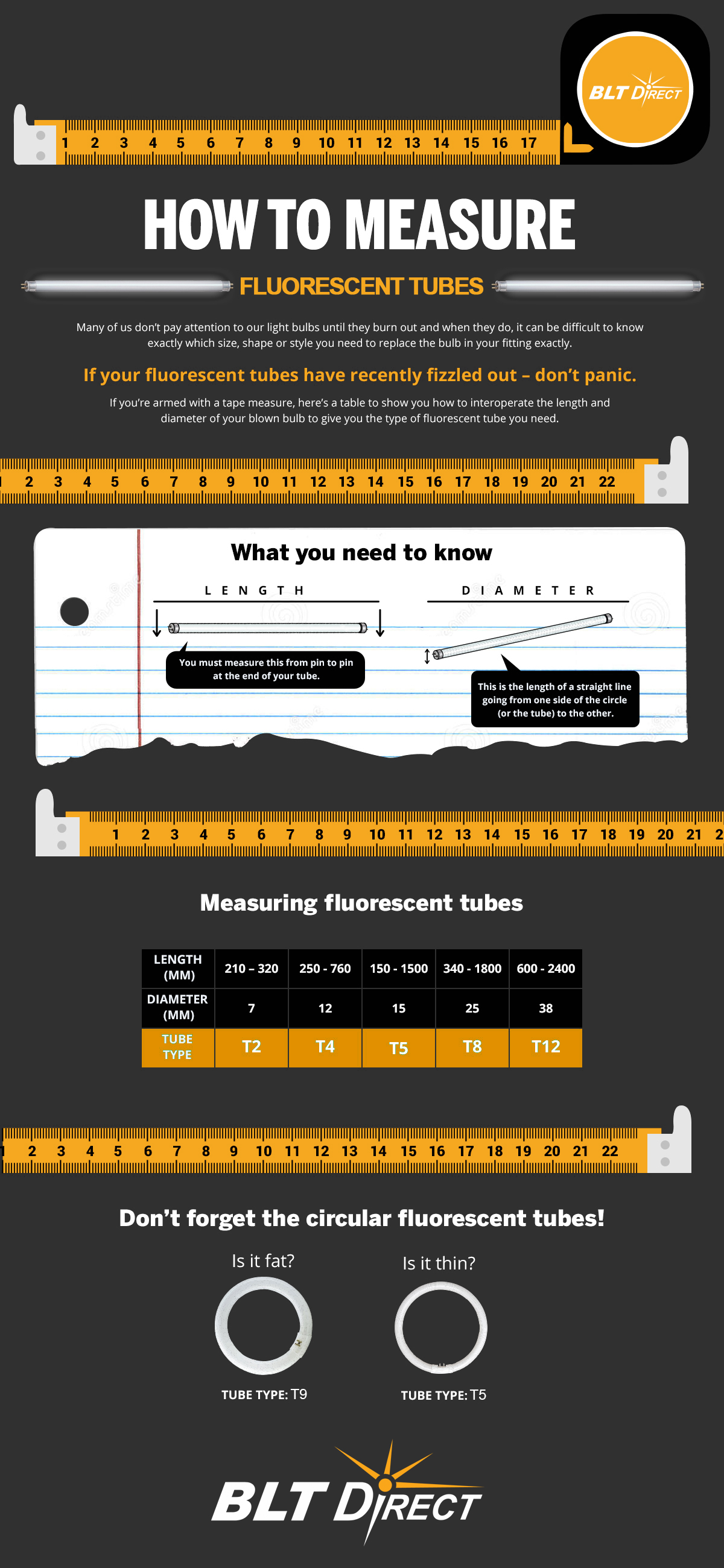 If you’re armed with a tape measure, here’s a table to show you how to interoperate the length and diameter of your blown bulb to give you the type of fluorescent tube you need.