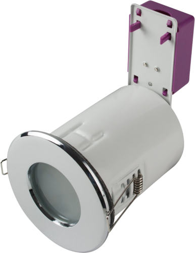 Suitable for offices, retails shops, reception areas, hotels, restaurants, bars and clubs and showrooms, these recessed downlights have a pressed steel body and front bezel, with a lovely chrome finish. Its fitting design and itumesent seals retain the integrity of 30, 60, 90 minute fire rated ceiling/floor constructions, ensuring it complies with BS476 Part 21 and with dichroic and aluminium lamp types. With class 1 Construction, it compatible with GU10 Halogen and some other LED fittings.