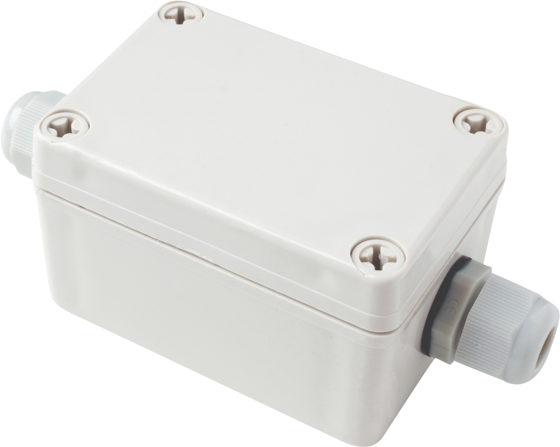 This small box, from Robus is ideal for wiring terminations and/or connecting strips, drivers, amplifiers and controllers.This IP65 junction box is complete with 4-way connector block