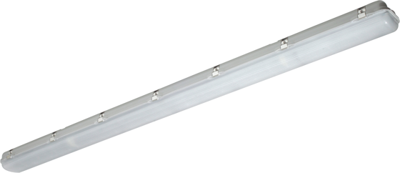With a 50,000 hour average lamp life and ingress rating of IP65, this Robus fitting can be used for external applications. Complete with anti-corrosion clips and an impact rating of IK08, it has a high efficacy of 123lm/W with a wide operating ambient temperature range of -25 degrees to 40 degrees; options available through Conversions: 0-10V Dimmable, Microwave Sensor. Suitable for workshops, garages, warehouses, car parks, farm buildings, wet areas and more, it serves as an LED replacement for 2 x 70W fluorescent corrosion proof fittings with a pro-diffuser providing higher photometric performance than LED tubes and low glare lighting.