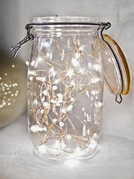 The jar trend is still going strong. Why not make the most of an empty jar and fill it with delicate LED string lights? This creates a gentle glow that will highlight shelves or illuminate dark areas of the room in an utterly unique way.